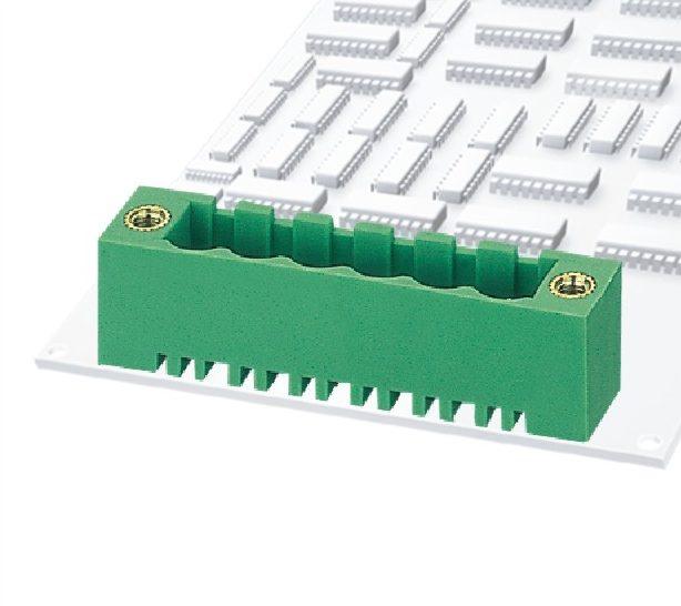 INATIVO 2EDGVM-5.08-12P-14-100A(H) - HEADER VERTICAL C/ FLANGE 12 VIAS 5.08MM A conexão do condutor é feita à mola; deste modo, o contato é assegurado sempre, mesmo com aplicações sujeitas a vibrações; Trata-se de produtos projetados de acordo com as normas internacionais IEC60998, UL1059, UL486E, CSA C22.2 No. 158. Os plugues à mola aceitam cabos com bitola de 0,5 até 1,5 mm², são compatíveis com todos os headers da família 15 EDG e estão disponíveis em módulos para diversas posições.